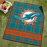 Cheer on your favorite team day or night with the NFL Miami Dolphins Personalized Plaid Picnic Blanket. The stylish plaid pattern with your favorite team's logo, customized for you, will be a favorite on a game day.