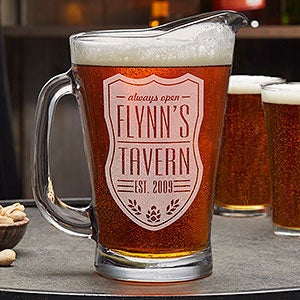 Calling all beer lovers! Complete the look of your home bar with custom beer mugs, tankards, beer glasses, growlers and more.