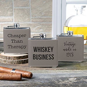 Personalize our quality stainless steel and leather flasks with names, special dates, photos, funny quotes and other custom details.
