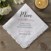 Let the mother of the bride know how special she is on your wedding day with our Mother of the Bride Personalized Wedding Handkerchief!