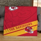 Cheer on your favorite team day or night with the NFL Corner Logo Kansas City Chiefs Personalized Blankets. The logo and helmet design with your favorite team customized for you, will be a favorite on a game day. Perfect to pack for tailgates too!