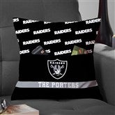 Be game day ready with the NFL Las Vegas Raiders Personalized Pocket Pillow on the couch. The pillow includes a front pocket to hold a remote control, reading glasses, snacks, etc. Makes a perfect gift for any sports fan!